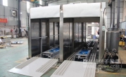 2、外形尺寸:寬4700*高2850*深13900mm,箱體內(nèi)可同時平排進三臺推車,烘烤時間可獨立設(shè)置(見附圖);上料區(qū)長1500mm,設(shè)有上料斜坡,便于推車進入緩沖區(qū);兩端緩沖區(qū)各長1700mm,各設(shè)有升降平臺,便于推車進出烘烤,爐蓋上加裝0.75KW高溫抽風(fēng)風(fēng)機;烘干區(qū)長7620mm,烘干區(qū)前后裝有隔熱卷閘門,加裝感應(yīng)器,底部設(shè)有傳送鏈條;下料區(qū)長1500mm, 加裝斜坡 ,以便推車出料。