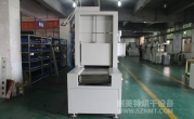 2、外形尺寸(約):總長10200mm*總高1770mm(不含馬達(dá)高)*總寬1050mm,地面到網(wǎng)帶的高度為900mm,內(nèi)寬為650mm,進(jìn)料高度為500mm;烘干部分總長8000mm,分4段,每段2000mm,烘干區(qū)前后設(shè)有自動升降門;出口處需設(shè)有阻擋氣缸和治具感應(yīng),可以自動和手動運行。可以手動清板,把機(jī)內(nèi)托盤手動放出。